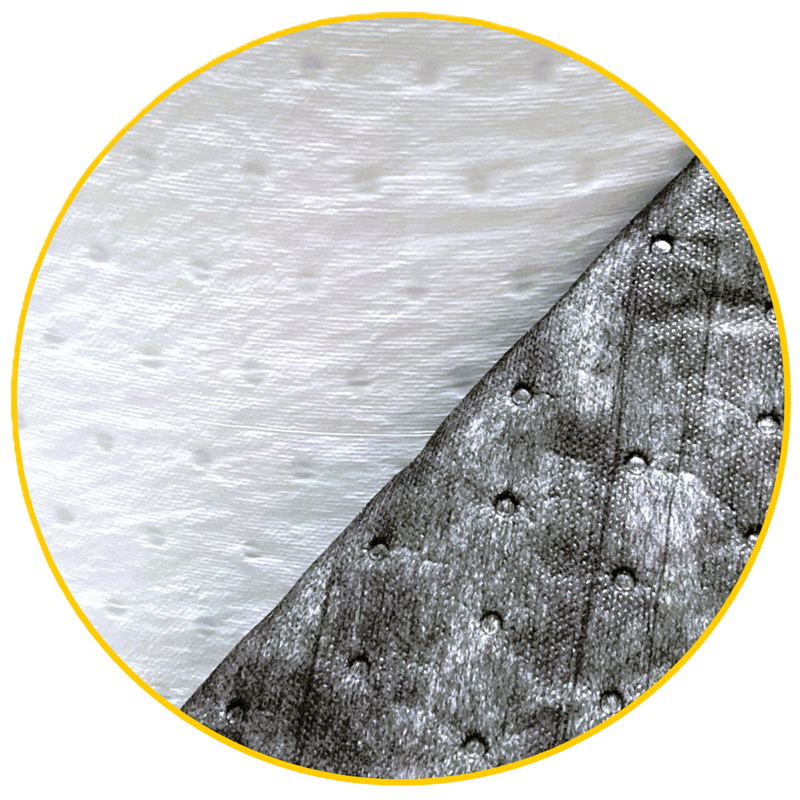 Die Roldex RR PP besteht aus drei Schichten, einer Plastikschicht, die keine Flüssigkeiten durchlässt und so dafür sorgt, daß der Boden immer trocken und sauber bleibt, einer Schicht aus hochwertigem Polypropylen zum Absorbieren von Öl und auf Öl basierenden Flüssigkeiten und einer dunklen, strapazierfähigen Oberschicht, die nicht nur trittfest ist, sondern auch dem Befahren mit Hubwagen oder Gabelstaplern widersteht. Ideal für Reparaturen auf Bahngleisen, damit kein Öl ins Erdreich dringen kann, für den Transport von Maschinen, damit nichts vom Wagen tropfen kann und generell für alle Anwendungen im Innen- und Außenbereich, bei denen der Boden vor Verunreinigungen durch Öl geschützt werden soll.